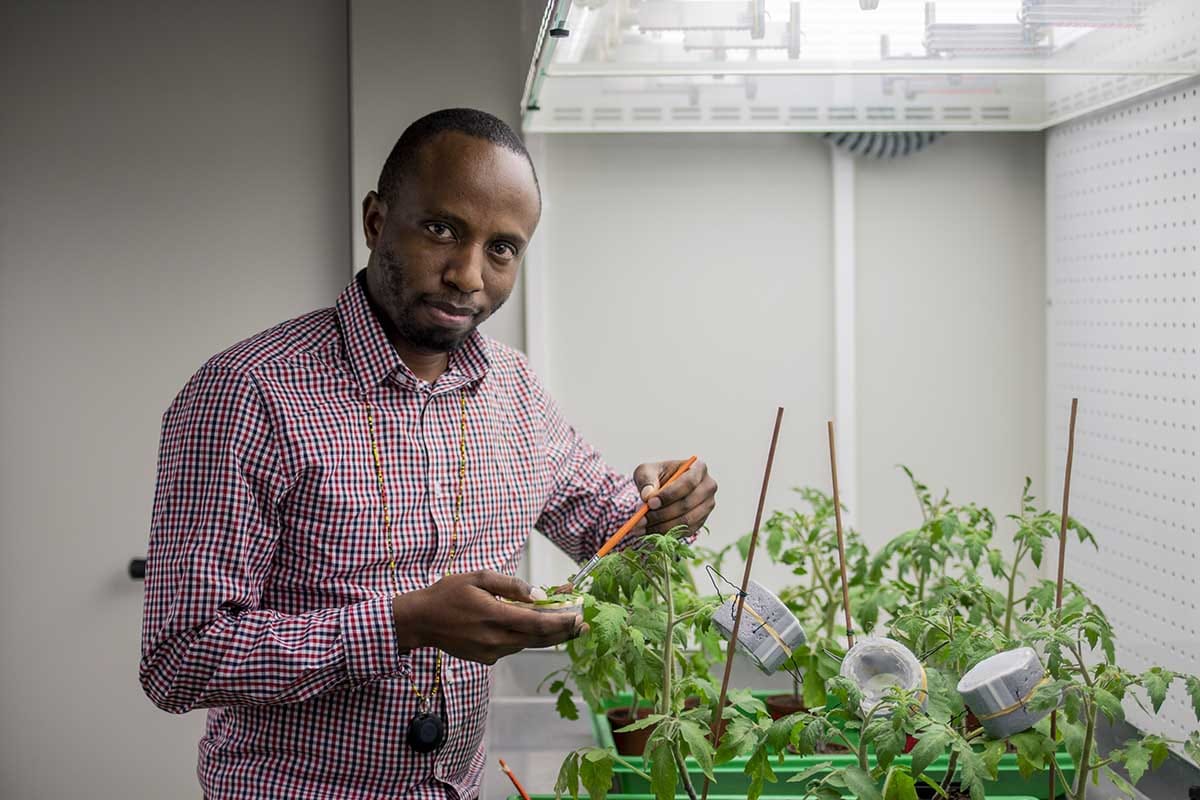 Crispus Mbaluto est doctorant dans le groupe de recherche sur l'écologie des interactions moléculaires au Centre allemand de recherche intégrative sur la biodiversité (iDiv), Leipzig, Allemagne. Son principal intérêt de recherche est de comprendre les mécanismes qui régissent les interactions entre les insectes/ravageurs souterrains et aériens via une plante hôte partagée. En particulier, il étudie si les nématodes parasites des racines affectent le niveau de résistance des plants de tomates aux insectes herbivores qui se nourrissent des pousses, c'est-à-dire les chenilles et les pucerons. Le travail de Crispus implique des manipulations expérimentales dans la serre et en laboratoire et l'utilisation d'approches innovantes qui couvrent les domaines de la biologie moléculaire, de l'écologie chimique, de la métabolomique et de la transcriptomique. Son aspiration générale en recherche est de faire progresser les connaissances sur les interactions médiées par les plantes et de les utiliser pour aider les producteurs de tomates à gérer les ravageurs de manière plus durable. Cela peut aider à réduire la dépendance aux pesticides, en stimulant l'économie ainsi que la biodiversité.